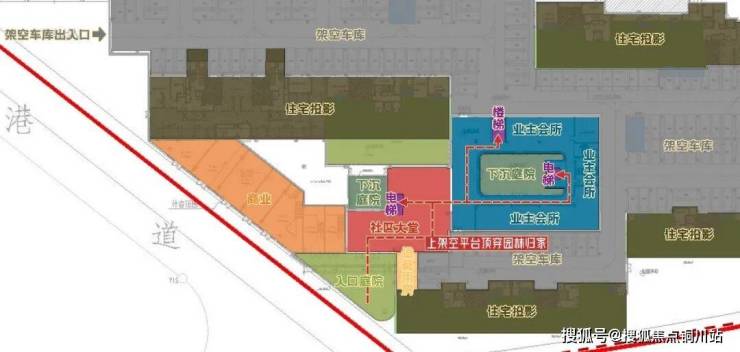 其一,归家大堂内厅的侧面、业主会所的里侧,各预留了一部电梯,通向架空平台顶。