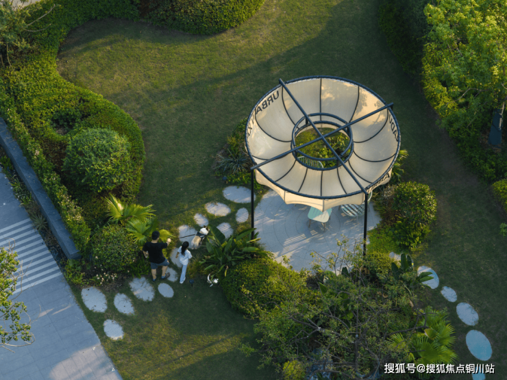 户外区域和大自然更为亲密,结合运动主题打造了纳凉廊架、八段锦平台、童梦秋千、康体设施、休憩花园5大场地,高浓度复合全龄段覆盖。