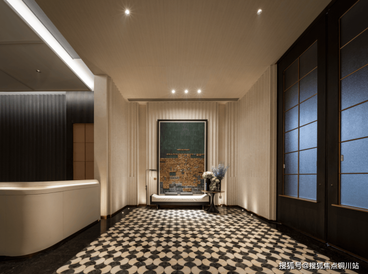 项目把回廊、大堂、大门串联,形成一整个大堂系统;