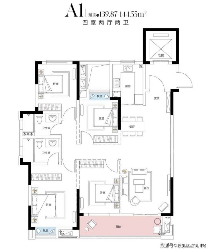 A1 建面约139.87-144.55㎡四室两厅两卫