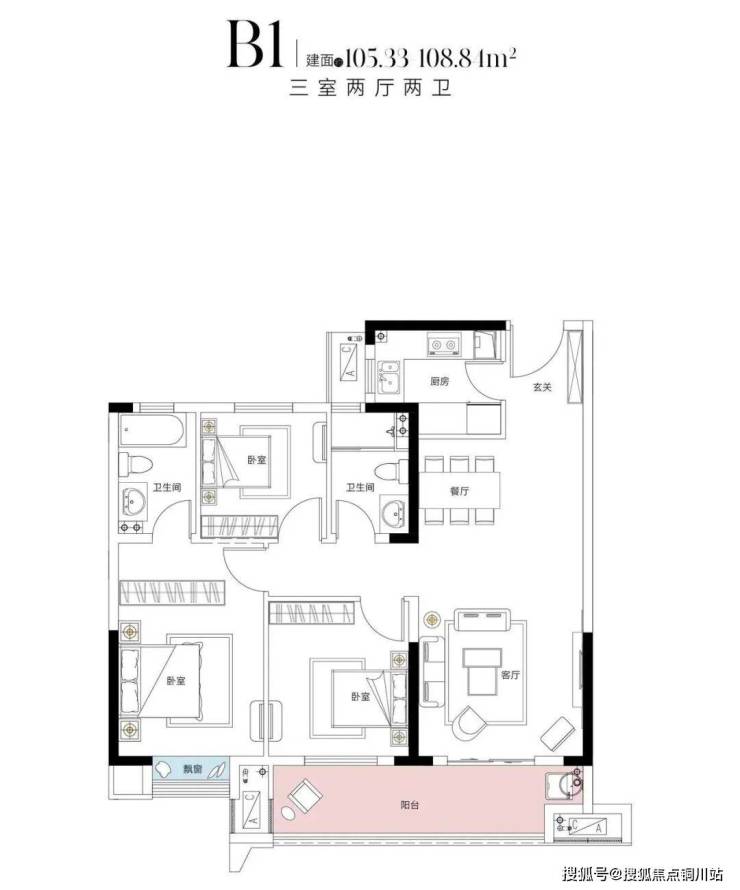 沐景之境:约11米南向三开间,约6.8米阔绰阳台,广袤视界尽揽天地大美。
