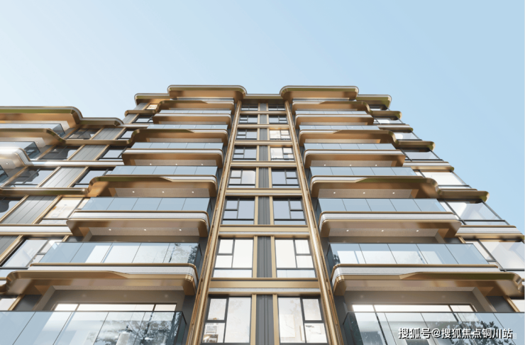 洋房是金地已经非常成熟的产品配置,顶部配置了坡屋顶阁楼,首层预计是下跃产品。大面积南向立面是玻璃与香槟金色铝板线条,通透感与质感极佳,属于赶超潮流的配置。