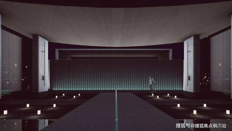 首次映入眼帘的是示范区大门,对称干净的盒子空间,超薄弧形顶板,精致细腻的绿色艺术景墙,打造纯粹震撼的立面形象空间。
