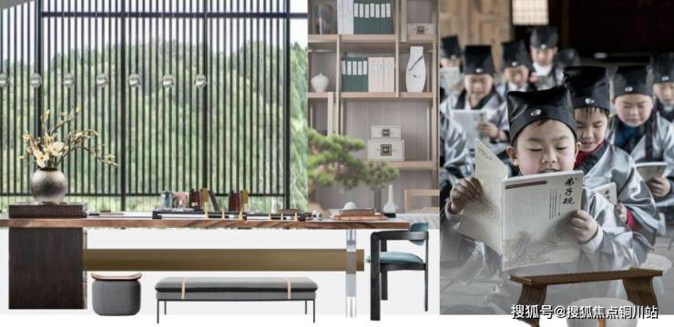国学讲堂分为阅读区和学习区,满足孩子们在此学习国学的需求,以达到中国文化的目的。
