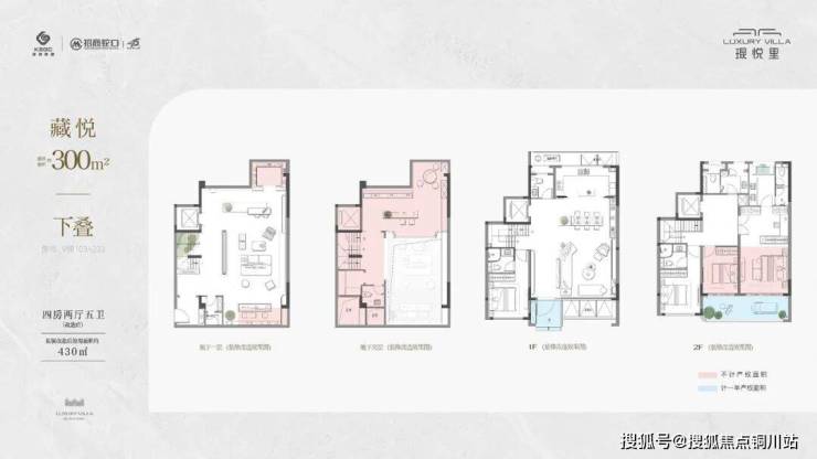 • 建筑面积约300㎡下叠,实得面积约430㎡,四房两厅五卫