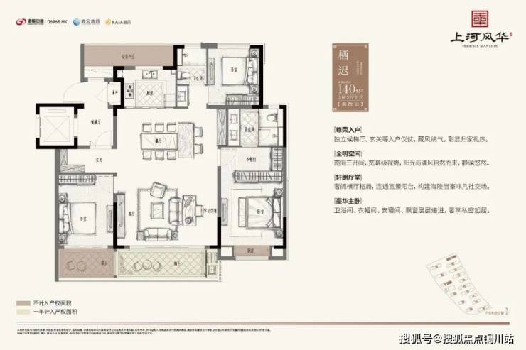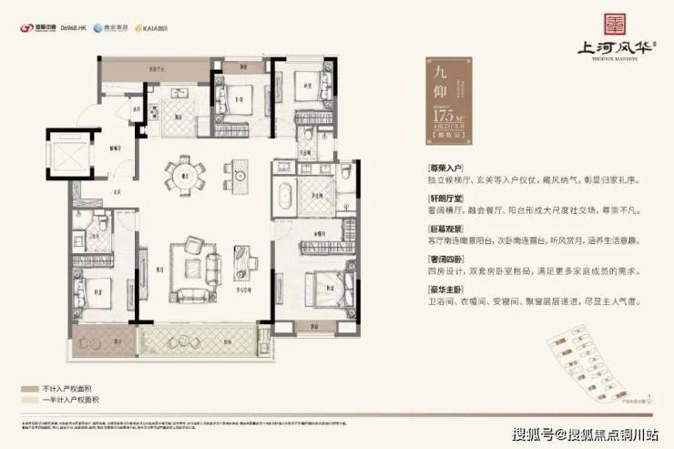 洋房产品均为精装交付,建面约140㎡、175㎡、207㎡,并采用六恒科技系统,包括“恒温、恒湿、恒氧、恒静、恒智、恒洁”六大科技标准。