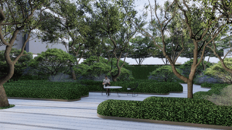 特意规划的3个约2000m²的中心大花园,均衡镶嵌于整个社区,成为社区的点睛之笔。增加了组团功能的丰富性,也提升了小区的艺术价值。