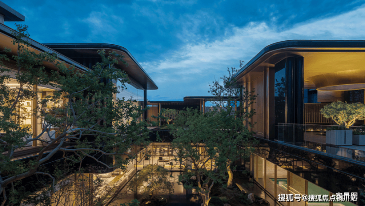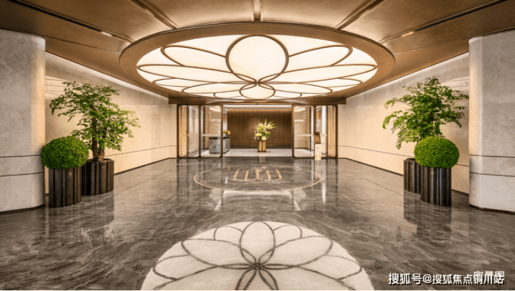 绿城·沁百合以百合为灵感,打造了“一芯一轴双环”的景观布局,呈现了立体流动的百合花园。一芯为下沉式庭院,4颗丛生大乌桕围合式布局,形成自然边界与私密氛围。约5米高悬挑飞瀑添灵动,搭配羽毛枫等多层次绿化与镜面树池错层平台,完全跳出传统园林的堆叠感,有种在酒店度假的松驰感。