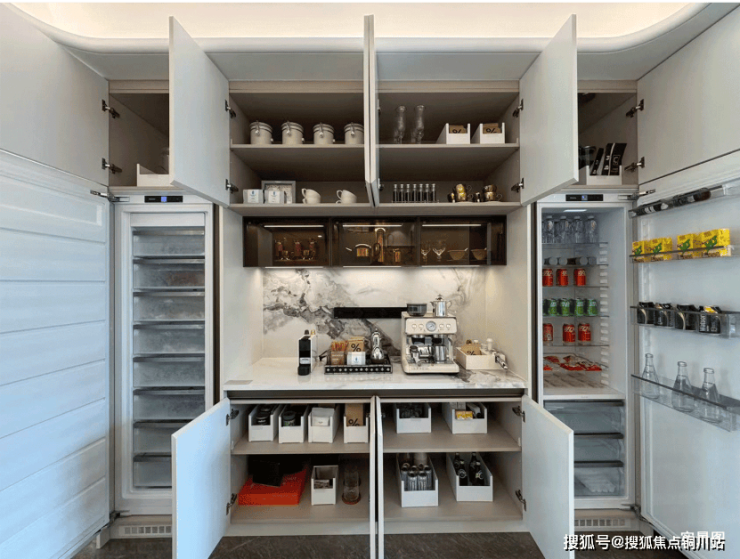 以绿城·沁百合约181㎡户型为例,全屋收纳空间约15m³(相当于300+个登机箱),入户玄关就有两组超大通顶收纳柜,钓鱼杆、宝宝推车、行李箱、鞋子等全都安排妥当。厨房不只有上方柜体拉篮、下方碗篮抽屉、调料抽拉柜,水槽下面的还专门做了一个下翻抽……每一处考究,都是人本的思量,只为回应当代家庭的真实改善需求。