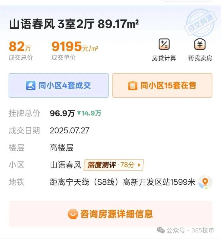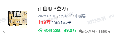 值得注意的是,世茂璀璨江山今年5月,成交了一套建面约95平3室房源,成交总价149万、成交单价15654元/平。对比二手房成交价格来看,这一套特价毛坯房源建面约95平、总价仅104万起,相差45万,妥妥的新房倒挂现房。