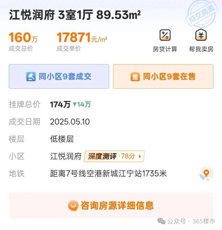 值得注意的,此前小区成交了一套建面约89㎡二手房,成交总价位160万,而且还是低楼层,对比之下新房便宜10万元,并且楼层还更好,还没有中介费。