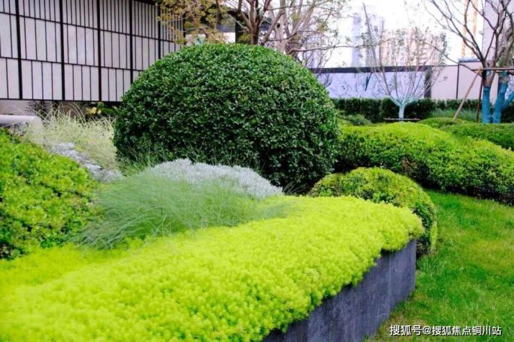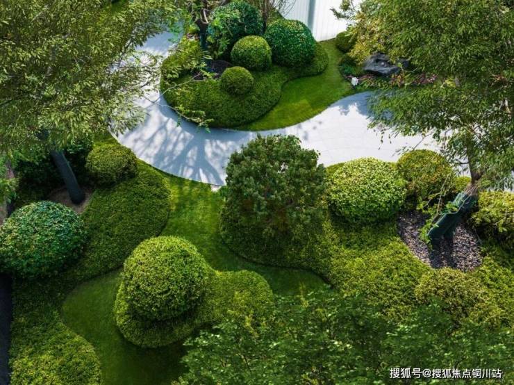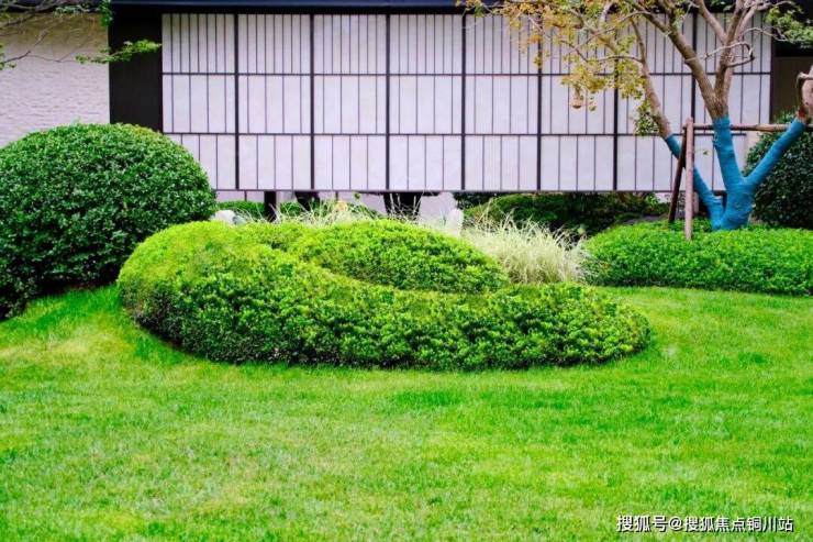 灌木修剪成龟背形,这种设计源自美术馆级景观,更加立体,但工艺要求极高。