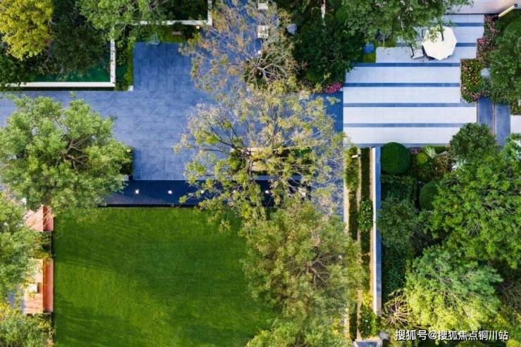第三进庭院「芳兰翠影」中,核心草坪从周边地面下沉约10-20公分。