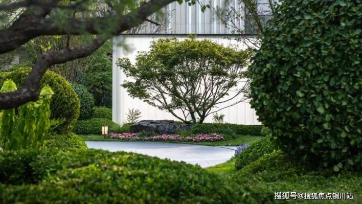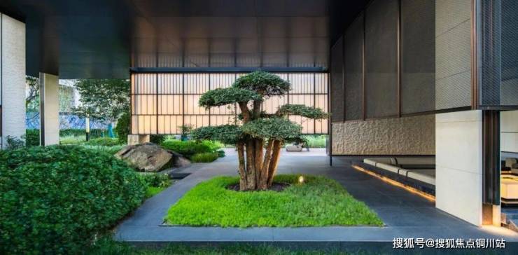 比如住宅入户大堂门前,利用茂盛的种植同样围合出一片专属前庭,也相当于归家的最后「一进」。