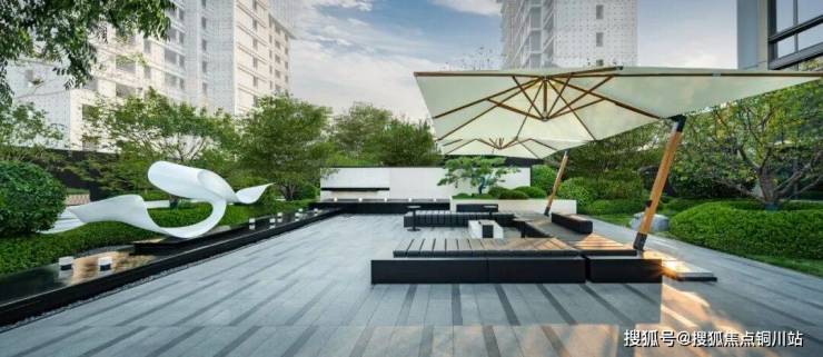 比如,下沉庭院上方的悬空平台,三面被景墙与护栏环抱。只需摆上四椅一几、撑起阳伞,便成为一处「悬崖客厅」。