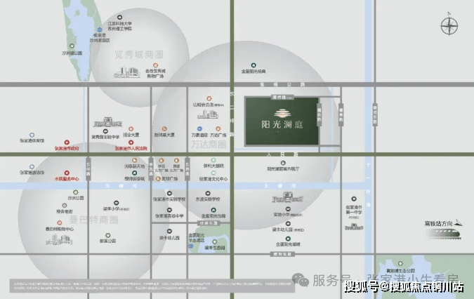 如果说产品力是核心引擎,那么优越区位与全维配套便是高端生活的坚实基底。阳光澜庭占据港城人民路与东二环黄金交汇点,地处一城发展核心方向,直连西二环、张杨公路等城市主干道,接驳苏虞张快速路,构建长三角 1 小时通勤圈;距在建地铁 10 号线蒋乘路站约 732 米,3 公里内覆盖多条公交线,通达全城无忧。