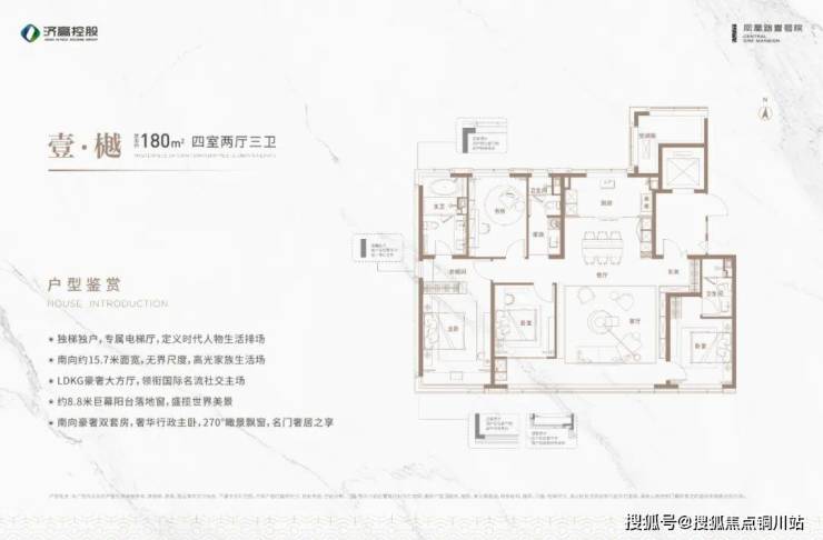 在户型打造方面,凤凰路壹号院引入国际前沿审美及设计理念,在视野、空间、功能、居住尺度等方面都足够奢阔。户型设计独梯独户,配有专属电梯厅,LDKG一体化宽景方厅,南向设计宽景阳台,将豪宅理念落位于每一处生活细节。