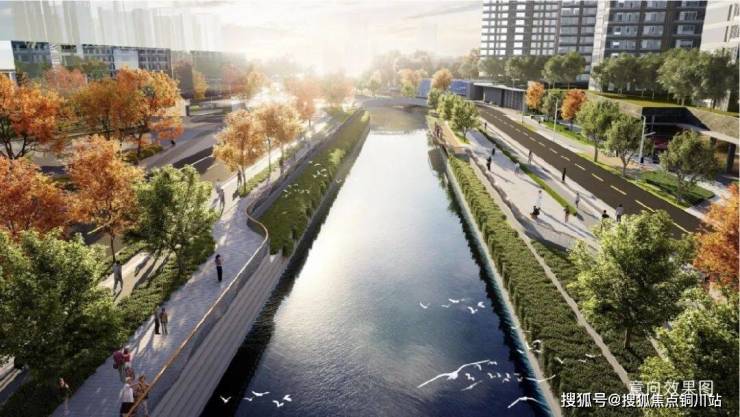 可以想象一下,在这个环水公园里,凤凰路壹号院的业主可以躲避城市喧嚣,寻找内心的静谧。对于老人而言,这里是茶余饭后散步的地方,可以与邻里老伙伴在水边聊天、健身。对于孩子而言,晚饭后,父母陪着他们在水边走走,玩耍,让孩子在望、听、触、嗅间与自然对话,更是让家庭更加和睦、孩子更好成长的一种契机。
