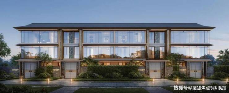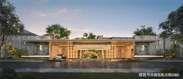 先看外立面,三段式经典构图,融合苏式屏风,用大面积玻璃局部点缀奢石,顶部采用东方屋檐的建筑形制,尽显东方之美。