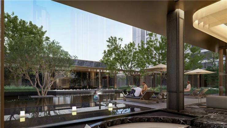 在建筑设计上,越秀天悦文华采用类公建化美学立面,以高级灰为主色调,打造出现代奢雅的建筑风格,重新定义了区域的人居美学高度。项目拥有近百米的城市美学界面,近 100m 交互式景观前序迎宾界面,不仅提升了城市界面形象,还让业主在归家途中便能感受到尊崇与惬意。约 52mx7m 的超宽归家大堂,气度非凡,尽显排场;酒店式迎宾环岛水景,为业主缔造尊崇礼序;约 3.6m 挑高归家大堂的 “星空顶” 礼遇光厅,让仪式感在细节处尽显。此外,项目还精心打造了 6 大东方主题院落,以 “留园” 式江南庭院为蓝本,配合洄游式观赏动线,将古典水景、对景、障景等元素进行现代式应用,营造出优雅的意境,让业主仿佛置身于诗意的画卷之中。独特造型的绿野仙踪主题乐园,为孩子们提供了更贴近自然的游玩体验,打造出 “家门口的游乐园”,让童心童趣自由徜徉。