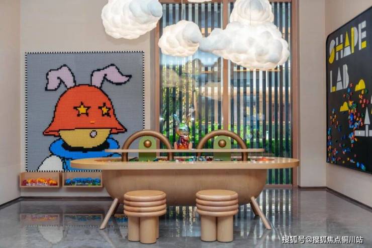 比如11号楼架空层,就针对儿童打造了专属IP的儿童文娱会客主题空间,活泼跳跃的色彩碰撞和配置打造形成强烈的视觉冲击力,在这里可以引导孩子的玩乐学习天性。