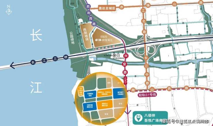 不仅距离长江不过数百米,口袋公园和长江三桥桥下体育公园还共同组成了一个半开放公园界面,实现了社区、公园、城市繁华的柔性融合。