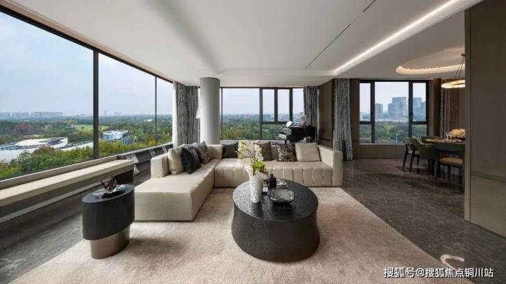 那一排直面城市森海的巨幅玻璃幕墙,真的太震撼了!把窗开到了最大,在家就能拥有270°环幕视野享受。