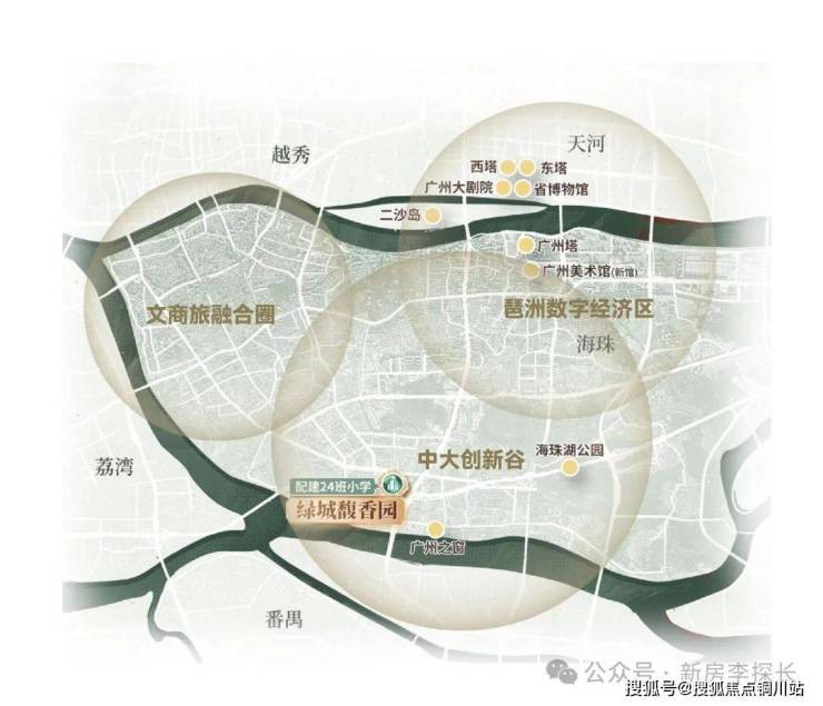 “琶洲数字经济区、文商旅融合圈、中大创新谷”三大产业板块环伺
