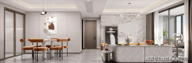 餐客厅一体:约5.6米阔尺横厅设计,居家待客更显从容
