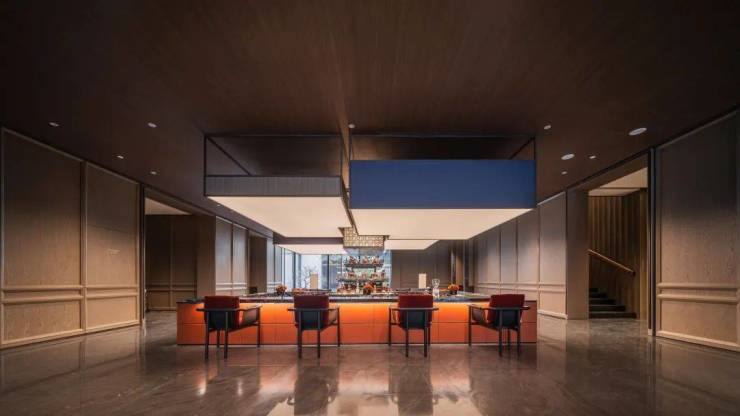 在禅月周围,是功能空间。行政酒廊、私宴厅、茶室、雪茄室环绕禅月,业主在不同空间,可以欣赏到禅月的不同形态。