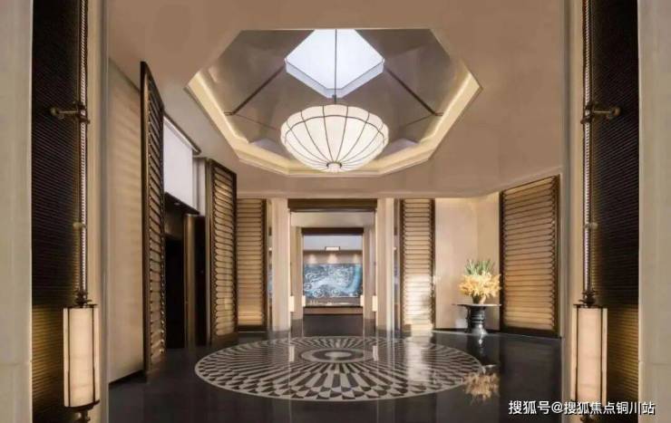 目前已呈现的望潮洋房地块主大门长约50米、高约10米,把庑殿金顶、斗拱转译,结合宝格丽金奢石等,不仅造型灵动飘逸,且极具东方气派。