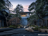 入口一侧,一棵全冠移植的弯杆红果冬青,寓意多子多孙、家宅兴旺;另一侧,则是特级斜飘槭,搭配希腊进口的月光米黄天然大理石,尽显低调奢华质感。