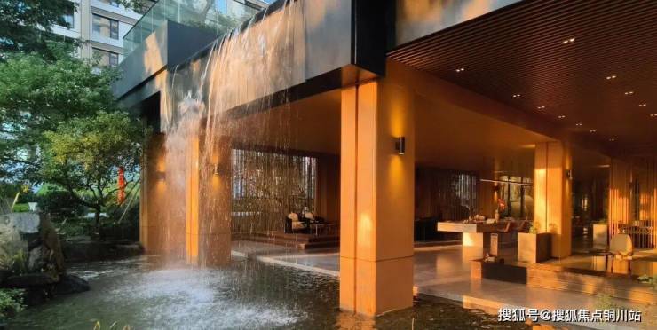 从入户大堂泛会所延伸出来的“灰空间”,光线和水流交错,过渡自然。