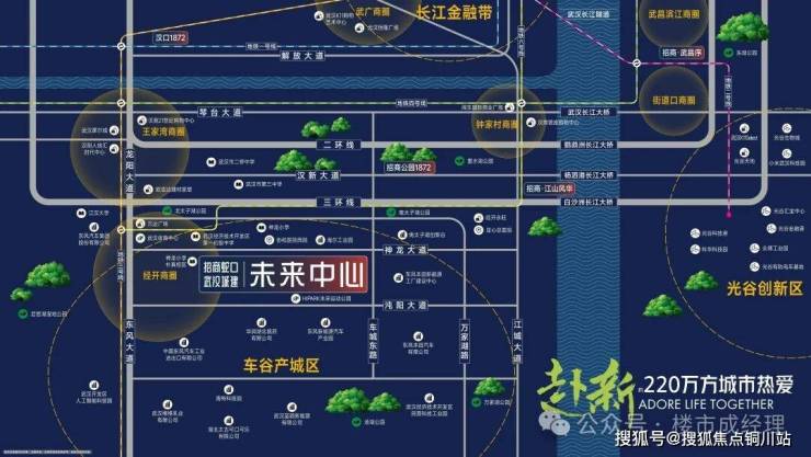 招商·武汉城建未来中心,由央企招商蛇口与国企武汉城建联袂巨献,布局武汉经开腹地,以柔性城市、幸福社区、热爱邻里三大核心理念,打造集居住、教育、商业、医疗、商办等于一体的百万方未来幸福生活样板 ,为城市更好的未来而来。