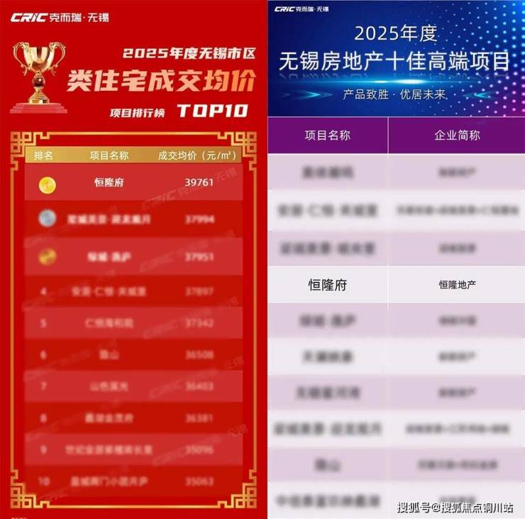 恒隆府不仅摘得《2025年无锡市区类住宅成交榜单》均价桂冠,更凭借出众的产品造诣,成功跻身《2025年年度无锡高端产品力测评榜》。
