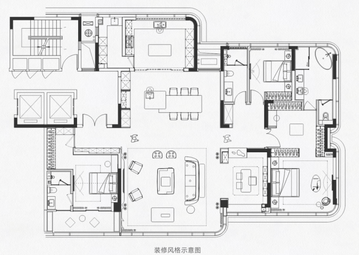 286户型面宽达到约20.3米,超尺度面宽体现了项目产品设计上对阳光、空气和景观的极致追求;建筑的四边都采用全玻璃设计,同时转角采用弧形玻璃,增加了整个户型的通透性,营造出360°的环幕超级视野;餐客厅一体化设计,形成一个完整的LDKG模块,面积达到约80㎡,空间方正,尺度舒适,私享奢华生活;多套房设计,其中主卧室面积达到约50㎡,面宽约4.6米,进深约12.1米,奢华品质尽显;分离式中西厨都是一线城市顶豪标配,中式料理和西式料理完美碰撞。