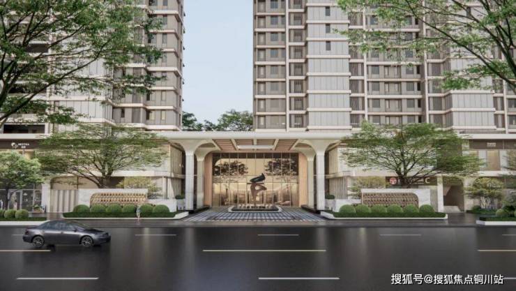 新现代简约立面,通过非对称黄金比例体块与线条感,凸显新现代主义的建筑风貌,形成昭示性建筑立面。