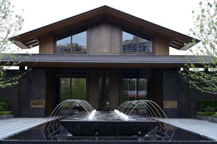 主入口的设计更是独具匠心,采用经典的东方十字脊顶形式结合藻井元素,屋瓦之下以奢石和实木、铝板、玻璃的组合,打造出大宅礼序归家的东方仪式感。约 9 米挑空酒店式大堂,将东方的礼序和西式的礼貌相融合,让居民在归家的瞬间感受到尊贵与优雅。