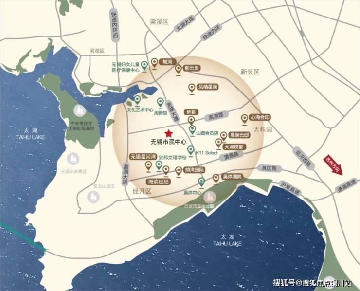 项目周边,无锡国际会议中心、奥体中心 (建设中)构筑全球地标集聚地;海岸城、山姆会员旗舰店、K11 Select购物艺术中心 (建设中 )组成世界精英消费场;无锡美术馆 (建设中)、国际网球中心等打造城市人文活力区。教育资源环伺,无锡师范附属太湖新城小学、无锡外国语学校等优质学府云集;贡湖湾湿地公园、尚贤河湿地公园等构成全球生态宜居高地;地铁4号线无缝接驳,无锡南站 (规划来源:《无锡南站周边片区概念规划及枢纽地区详细设计》 )更将打开长三角通勤新格局。