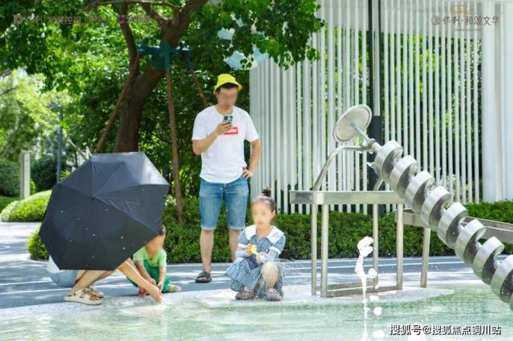 夏日戏水区:通过精致的装扮打造,使园区戏水池化身清凉派对,让孩子能够在戏水区欢快地玩水,让忙碌的收房业主们能够有片刻的休闲时光,体验玩水的快乐。