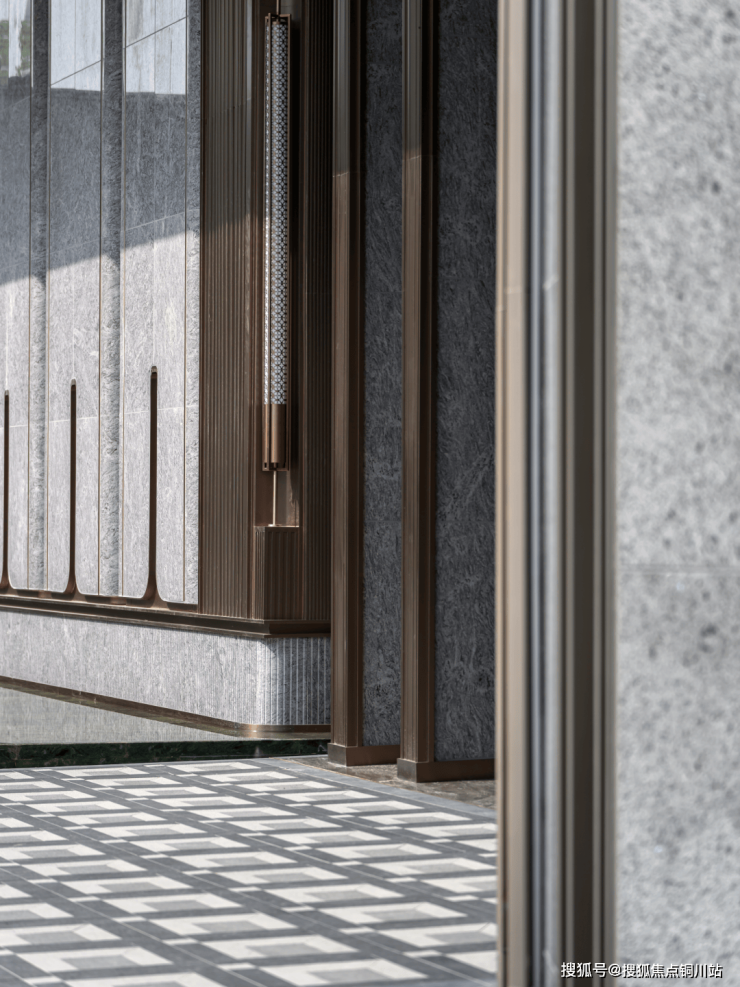项目通过精细化的细节把控与品质化的整体呈现,摒弃浮华、去符号化,呈现隐谧而低调的顶级定制感。底层归家入口在营造上贴近自然元素,结合内外部的庭院空间,形成兼具品质与自然的归家感受。酒店式的归家大堂仪式感十足,对称布局彰显庄严。暖色系铝板的运用,让归家流线多了一丝温暖的体验