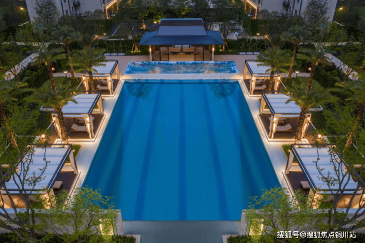 步入A地块约8000㎡的实景中央景观区,一场充满“国际范”的度假之旅就此开启。大到对称的丛生乌桕树阵、灵动的龙鳞叠水景墙、大小戏水池的层次排布,小到格栅、小品等装饰细节,皆匠心独运。