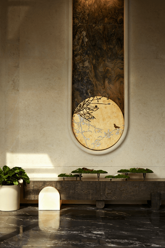 地面拼花、墙面沿口弧度工艺、颇有艺术气息的石材运用等细节增量上的格外投入,使人能够在柔和、温润、统一的设计语言当中感到美的存在、美的历久弥新。
