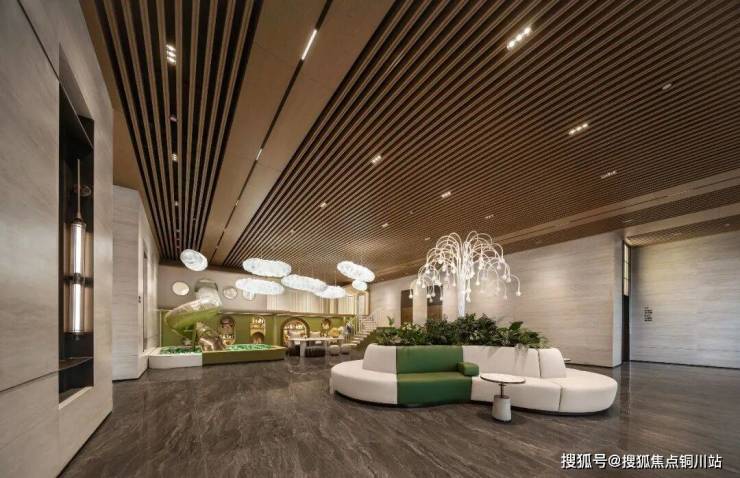 更值得称赞的是,项目小高层约 5.8 米挑高的单元大堂,与 2 万+的天瑞采用同款设计,尊贵气派尽显。