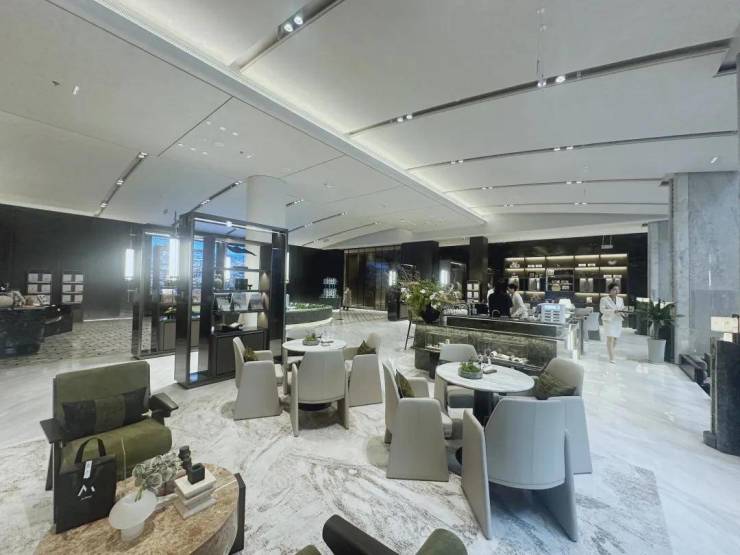 LOW-E 玻璃的应用,不仅实现了高效的隔热保温功能,还赋予了建筑外观更加透明与璀璨的外观,如同一面映射四周景色的巨大镜面。米白色一体化板材的巧妙融合,恰到好处地平衡了整体色调的冷硬,营造出温暖而柔和的视觉体验,使建筑外观既显高端奢华,又不失亲和与和谐,成为城市中一道引人注目的风景。