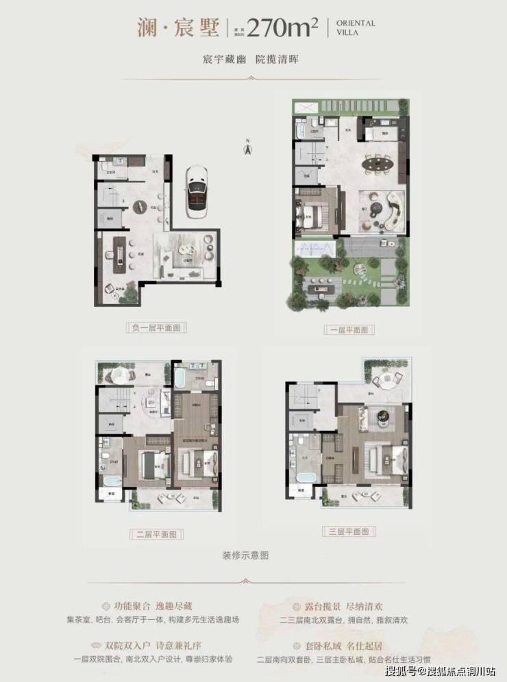 户型设计上,大面宽、多套房、南北双入户等核心优势,突出了院墅产品的人居体验,又通过私家花园、多层双露台等附赠空间,加倍提升产品实得率,也为高净值客户塑造了尊崇的归家礼序、融于自然的立体生活场景以及通透舒适的人居环境。