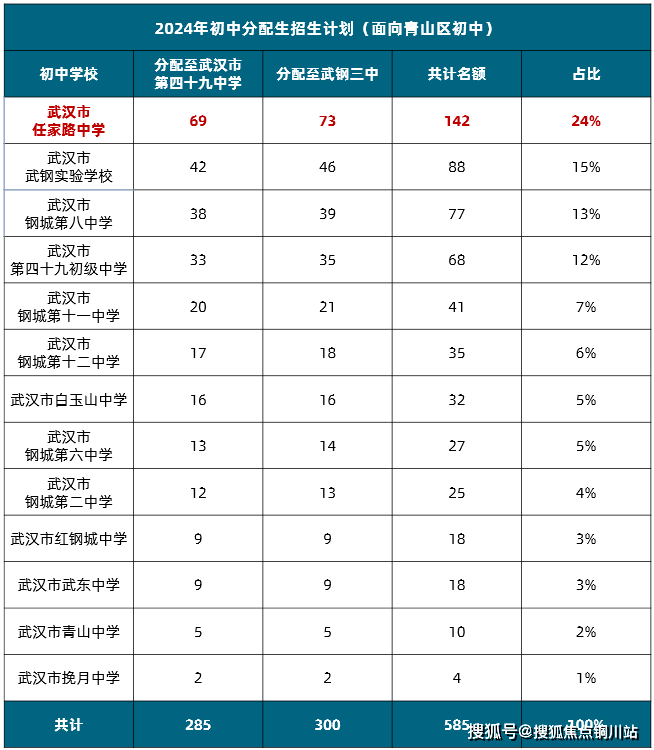 吉林街小学+任家路中学是青山第一梯队的中小学,尤其是任家路中学是全市初中三十强,示范率、普高率曾居青山区公办初中第一名。而在2024年的高中分配生招生计划中,任家路中学的分配生指标在区域内占比最高,约占全区分配生名额的1/4。