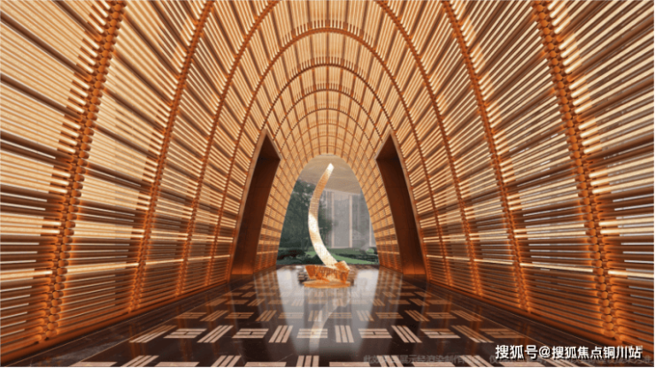 超10米挑高、约26米面宽的豪奢社区归家大门,如江面初升的朝阳,带来四射的光芒;约5.8米高寰幕穹顶的归家通廊,来自君悦酒店的灵感,约1450根定制发光水波纹管,鎏金金属线条交织水纹玻璃,如晨曦洒落江面,光影律动;会所大堂,约3米直径圆形悬浮吊顶与香格里拉翡翠珍罕石材墙面辉映,如月光诉说着江的故事;归家必经的电梯厅,精选奢石纹理,组合形成如江水灵动清冽,让每一次抵达都沉浸于江的氛围。