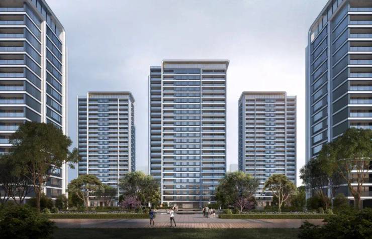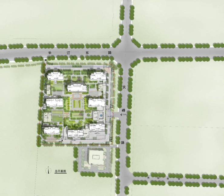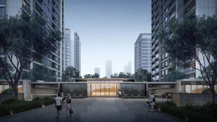 本项目整体规划设计营造了落客前场—入口大堂—中心花园—组团花园—架空会所—单元门厅等多层次归家体系。