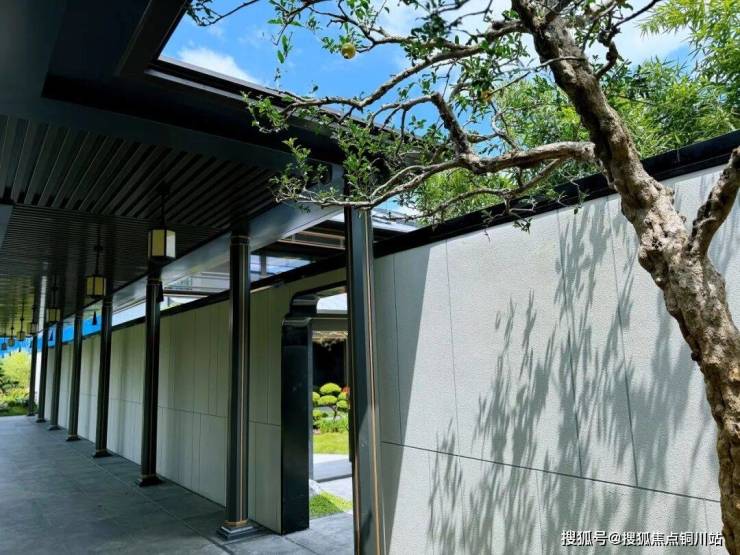 耦园榭以半亭形式立于水畔,结合白墙、植物,轻盈通透。简化“悬鱼”装饰,以铝板替代传统木构,在传承与当代之间达成平衡。